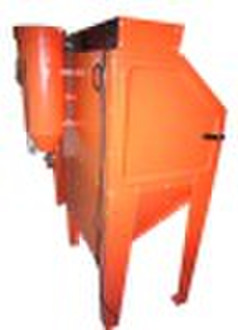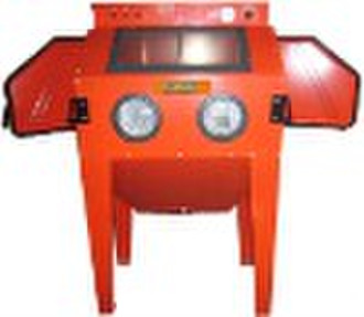 350L industrial sandblast machine LD-D02350 Pistol-grip blasting gun; Foot pedal operated; Natural rubber/vinyl blast gloves; Perforated steel flooring-abrasive large particle-separating screen and clean-ourt door; Air regulator/gauge panel; 14 gauge steel legs; Eliminating typical suction pick-up tubes and hoses, media metering valve putsour economy; External flourscreen lighting system. Packed in wood case.